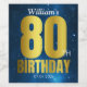 A gorgeous blue and gold effect 80th birthday wine label. This space themed design is the perfect party or gift wine label. Personalise with our own custom name and date. Gold and white typography on a universe background.
