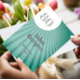 Blue sunrays are on the front of the personal invitation.