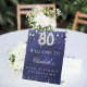 A welcome sign for a 80th birthday party. A navy blue background with elegant faux silver stars. The blue colour is uneven. Personalise and add a name and text. White letters.