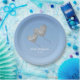 80th birthday blue and silver balloon party plate.