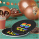 This cheerful, colourful, and fun birthday-themed paper plate design features a large number "80" and the message "HAPPY BIRTHDAY,", both having a rainbow spectrum gradient inspired pattern colouring, along with a bold yellow custom name. The background is coloured black. Fun, customised paper plates like this might be used at a celebration being held to honour somebody’s 80th birthday. [~Z0000488]