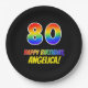 80th Birthday: Bold, Fun, Simple, Rainbow 80 Paper Plate