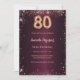 For an elegant 80th birthday. A burgundy gradient background colour. Decorated with rose gold faux sparkles. Personalise and add a name and party details. The name is written with a hand lettered style script