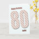 A very modern 80th birthday card. This card is truly fabulous. Big letters in modern stripes on a blue background. Customise for your own unique message.