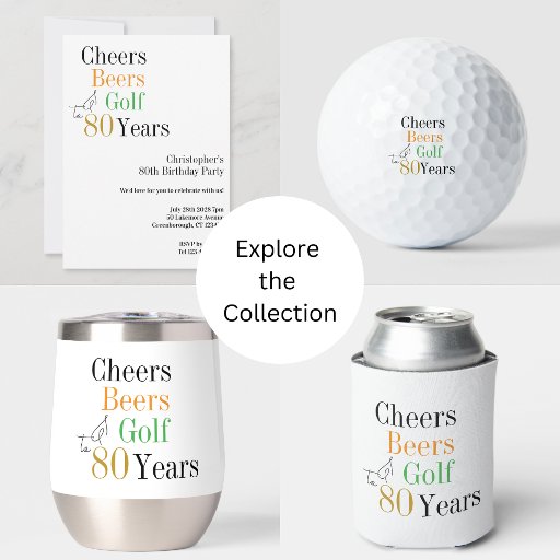 80th Birthday Golf Party Cheers Beers MinimalDesigned by Only The Moon