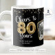 80th Birthday Cheers to 80 Years 2 Photos Black Gold Balloon Confetti Personalised Coffee Mug. Celebrate an 80-year-old with this festive personalised mug gift featuring 2 photos, the title CHEERS TO 80 YEARS with faux metallic gold balloon numbers and confetti and modern script typography and your custom text in your choice of background colour (shown in black). The sample says HAPPY BIRTHDAY NAME. ASSISTANCE: For help with design modification, transferring the design to another product or for coordinating items, contact the designer BEFORE ORDERING via the Zazzle Chat MESSAGE tab below or email makeitaboutyoustore@gmail.com.