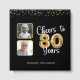 80th Birthday Cheers to 80 Years 2 Photos Guest Book. Celebrate an 80th birthday with this elegant and festive personalised guestbook, memory book or scrapbook for the guest of honour featuring the title design CHEERS TO 80 YEARS with faux metallic gold balloon numbers and modern script typography with gold streamers and confetti and white lights, 2 photos and name in your choice of background colour (shown in black). ASSISTANCE: For help with design modification or personalisation, transferring the design to another product or if you would like coordinating items, contact the designer BEFORE ordering via Zazzle Chat or email makeitaboutyoustore@gmail.com.