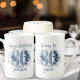 80th birthday mug, with fully editable wording to personalise as you wish, such as "happy birthday [name]" and/or "cheers to 80 years". Design features number 80 decorated with rose buds, flower blooms and foliage in shades of coastal blue and sand. Subtle feminine and elegant design with watercolor floral arrangements, paint splatters and brush strokes. Pretty and useful 80th birthday gift.