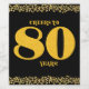 A 80th birthday celebration featuring a chunky retro modern 80 in a gold glitter pattern with speckled gold confetti border over a black background.