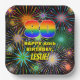 This exciting and upbeat birthday paper plate design features a large number “80” having a colourful rainbow spectrum inspired gradient pattern. It also features the message “HAPPY 80th BIRTHDAY,”, and a customisable name. The background of the front features an eye-catching, multicolored pattern inspired by bursting celebratory fireworks. Paper plates like this might be used at a party held in celebration of somebody’s eightieth birthday. [~Z0000604]