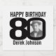 80th birthday black and white photo party paper beer / wine labels. Great to add a personal touch to a surprise eightieth birthday party. Personalise with your birthday boys or girls photo in the 0 of 80 and personalise with your choice of name. Designed by Sarah Trett. www.sarahtrett.com for www.mylittleeden.com