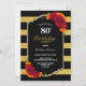 Black and gold striped 80th birthday dinner party invitation featuring elegant red and orange floral displays. Text is fully customisable to enable you to include all of your own information for your birthday celebration. (NB: Faux glitter has been featured on this invitation.)