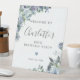 80th Birthday Dusty Blue Floral Welcome Pedestal Sign