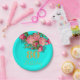 80th Birthday Eightieth Blue Gold Rose Elegant Paper Plate
