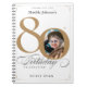 80th Birthday Elegant Script White Gold Guestbook notebook. And elegantly designed special birthday celebration, featuring a custom photo of birthday person and script calligraphy with vintage flourish elements. Add photo inserts to this binder to make it a wonderful album to store all your photos and memories of the celebration! Need help? Simply contact me!