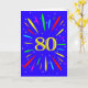 An explosive 80th birthday card! What a wonderful way to send birthday greetings. The number 80 in bright yellow with an explosion of bright colours and stars.