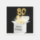 Gold balloons with sparkles and ribbons in a white box on black background for 80th birthday party.