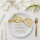 80th Birthday Gold Damask and Faux Bow Paper Plate