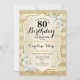 80th Birthday Invitation. Elegant floral design in gold and white. Features faux glitter gold stripes, white roses stylish script font and confetti. Perfect for a glam birthday party.