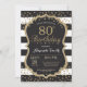 80th Birthday Invitation. Black and Gold Glitter Invitation