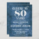 80th Birthday Invitation Blue Linen Rustic Cheers