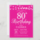 80th Birthday Invitation Hot Pink