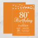 80th Birthday Invitation with String Lights. Orange Background. Women Men or Women Birthday. 13th 15th 16th 18th 20th 21st 30th 40th 50th 60th 70th 80th 90th 100th, Any age. For further customisation, please click the "Customise it" button and use our design tool to modify this template.