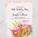 Happy pink and orange flowers, 80th birthday invitation card with a colourful watercolor painting of a flower bouquet.