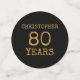 For those celebrating their 80th birthday we have the ideal birthday party confetti with a vintage feel. The black background with a white and gold vintage typography design design is simple and yet elegant with a retro feel. Easily customise the text of this birthday gift using the template provided. Part of an 80th birthday collection of party supplies and gifts.