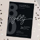 Celebrate a milestone birthday in style with this modern and minimalist 80th birthday invitation. Featuring a monochromatic black design, this invitation is sure to make a statement. The sleek eighty script adds a touch of sophistication to the design. Perfect for a gender-neutral celebration, this simple yet stylish invitation is ideal for anyone looking for an elegant and chic way to mark this special occasion. Make your eightieth birthday party unforgettable with this stunning invitation for him or her.