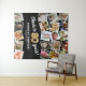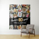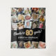Modern 80th birthday backdrop featuring a stylish black background that can be changed to any colour, a 20 photo collage template of through the years, the saying 'cheers to 80 years', their name, and the date.