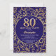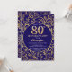 80th Birthday Navy Blue and Gold Floral Pattern Invitation