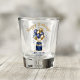 This modern 80th birthday party shot glass featuring a 2-layer navy blue and gold cake with navy blue and gold balloons, the number 80 in gold and the guest of honour's name and the party date would be perfect for celebrating your husband, brother, dad, uncle, grandfather, great grandfather, friend. They are traditional and classic while being fresh, modern and contemporary. They make awesome favours!