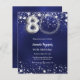 A modern, stylish photo invitation for a 80th birthday party. A navy blue background, decorated with stars. The blue colour is uneven. Personalise and add your photo and party details.
