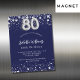 A modern, stylish and glamourous magnetic invitation for a 80th birthday party. A navy blue background, decorated with faux silver stars. Personalise and add your name and party details. Number 80 is written with a balloon style font.
