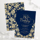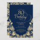 Navy gold elegant 80th birthday party invitation. Classy design featuring roses, faux gold foil and typography script font. Trendy invite card perfect for a stylish female bday celebration. Personalise with your own details. Can be customised to any age. Printed Zazzle invitations or instant download digital printable template.