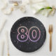 Glowing neon sign on black background with confetti for 80th birthday party.