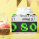 This nerdy and fun birthday-themed wrapping paper design features a large green classic video game style number "80" on a black coloured background. It also features the birthday greeting message "Happy 80th Birthday,", and a personalised name. Silly wrapping paper like this might be used to wrap 80th birthday gifts being given to a computer system administrator, a computing historian, or somebody who really likes video gaming. [~Z0000403]