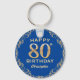 80th Birthday Party Blue and Gold Glitter Frame Keychain. For further customisation, please click the "Customise it" button and use our design tool to modify this template.