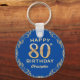 80th Birthday Party Blue and Gold Glitter Frame Key Ring