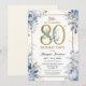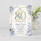 80th Birthday Party Elegant Dusty Blue Floral Invitation