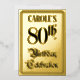 The front of this fancy eightieth birthday celebration foil invitation/announcement card design features the message “80th Birthday Celebration” in elaborate script-style text. It also has a customisable name. The back features personalised details about the event, such as the date, time, venue/location, and any other relevant information. Elegant, elaborate, editable invitations like these might be used to invite guests to a birthday party being held in celebration of somebody’s 80th birthday. [~Z0000596]