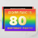 The front of this vibrant and upbeat eightieth birthday celebration foil invitation card design features a custom name, a large number “80th”, the message “BIRTHDAY PARTY!”, and a border. The background of the front features a fun, multicolored, rainbow spectrum inspired gradient pattern. The back features personalised details about the event, such as the date, time, venue/place, and any other information that may be relevant. Editable invitations like these might be a fun way to invite guests/attendees to a birthday gathering being held in celebration of somebody’s 80th birthday. [~Z0000599]