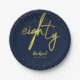 80th Birthday Party Glamourous Navy Gold Paper Plate