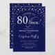 Elegant design with faux glitter silver and navy blue. Cheers to 80 Years! Message me if you need further customization.