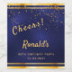 A 80th Birthday Party celebration for him, boy, guy in dark blue, navy blue background. The blue colour is uneven. With a faux gold frame and golden confetti sprinkle, golden coloured letters. Text: Cheers! Personalise and add a name and age 80, golden letters. The name is written with a modern hand lettered style script.