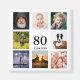 A magnet for a 80th birthday party for a guy, celebrating his life with a collage of 8 of your own photos. Templates for the age 80 and a date. Date of birth or the date of the party. Black coloured letters. White background. Perfect as a party favour, keepsake or as a save the date reminder for your guests.
