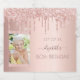 A sparkling wine label for a feminine and glamourous 80th (or any age) birthday party. A rose gold background with rose gold drips, paint drippimg look. Personalise and add your own photo of the birthday girl. The text: The name is written in dark rose gold with a large modern hand lettered style script with swashes. To keep the swashes only delete the sample name, leave the spaces or emoji's in front and after the name. Personalise and add a name, age 80 and a date.
