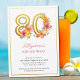 80th birthday party invitation with gold number 80 decorated with pretty flowers. Feminine and elegant design with watercolor floral arrangements in shades of pink yellow orange and purple. Perfect for 80th birthday celebration, spring or summer birthday lunch, garden tea party etc.