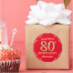 80th Birthday Party Red and Gold Glitter Frame Sticker. For further customisation, please click the "Customise it" button and use our design tool to modify this template.
